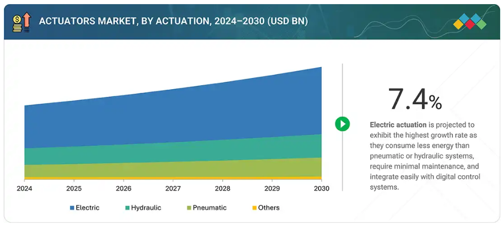 自動化への需要増加と効率的な制御システムの必要性が、アクチュエータ産業を牽引する主要な要因となっております。電気アクチュエータの開発や、IoTおよびAIとの統合といった技術的進歩は、その機能性と応用範囲をさらに拡大する一助となっております。