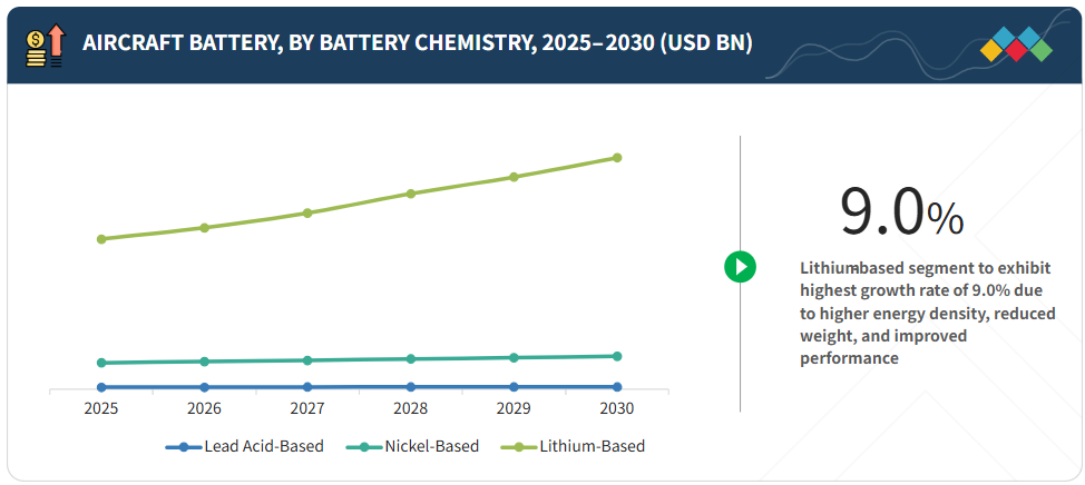 ハイブリッド電気航空機および電気航空機が、航続距離の延長、積載効率の向上、航空機電動化の目標達成のために高Wh/kgバッテリーを必要としていることから、成長が支えられています。
