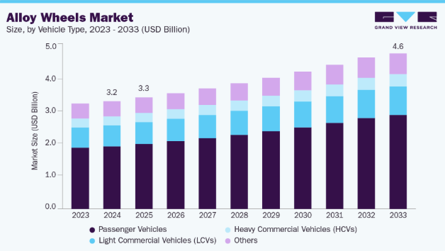 マグネシウム合金セグメントは、予測期間中に3.1%のCAGRで大幅な成長が見込まれる。その超軽量特性は、最大効率と航続距離の延長を求める高性能車や電気自動車にとって不可欠である。コストの高さや製造の複雑さにもかかわらず、マグネシウム合金は優れた強度重量比を提供し、車両のダイナミクスを向上させ、排出ガスを削減する。マグネシウム合金ホイールの耐久性向上と生産スケーラビリティ強化に関する研究が、このニッチセグメントの成長をさらに加速すると見込まれる。