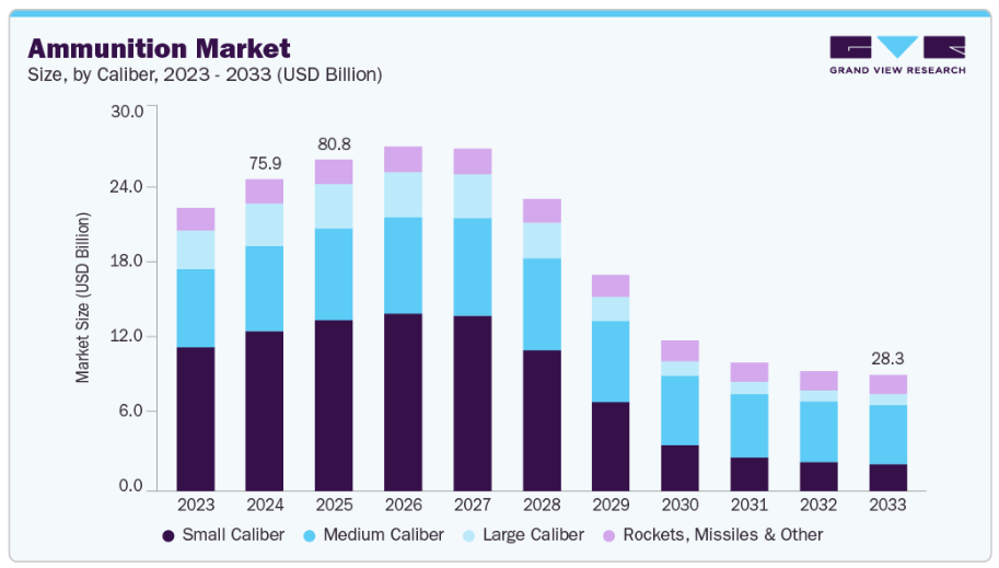 さらに、世界的なテロ活動の激化により、防衛機関がより効果的な弾薬を調達する必要性が高まっており、市場の成長傾向を後押ししております。レクリエーションとしての射撃スポーツの普及拡大や、複数の地域における民間人の銃器所有増加も市場拡大に寄与しております。スポーツ射撃用のライフルやピストルに使用される小口径弾薬は、射撃活動に参加する民間人が増加するにつれ、需要が高まっております。加えて、狩猟や射撃スポーツ関連用品の商業セグメントは防衛需要を補完し、市場基盤を拡大しています。