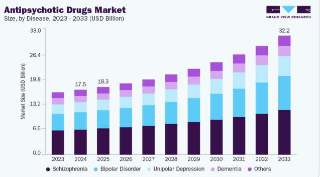 精神病性障害の有病率増加が抗精神病薬業界の需要を牽引すると予想される。統合失調症の罹患率は一貫して男性が女性を上回っており、地域的な平均寿命の延伸に伴い、統合失調症の全体的な負担はさらに増大すると予測される。認知症関連精神病などの症状がより顕著になる高齢化も需要を支える要因である。新規製剤や新規作用機序の承認が市場成長を後押ししており、これらは従来療法の限界を克服するものである。