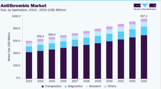 血栓症リスクを高める外科手術、外傷症例、妊娠中の合併症の増加も、アンチトロンビン療法の需要拡大に寄与している。アンチトロンビン産業は、血栓塞栓症および凝固障害の着実な増加、遺伝性アンチトロンビン欠乏症への認識の高まり、早期抗凝固療法の重要性によって牽引されている。米国では毎年90万人が静脈血栓塞栓症(VTE)に罹患しており、入院中・退院直後、がん治療中、妊娠中の個人が特に高いリスクに晒されている。推定6万~10万人の米国人がVTEで死亡し、さらに多くの患者が長期的な合併症を経験しており、効果的な予防と管理の必要性が極めて重要であることが浮き彫りとなっている。