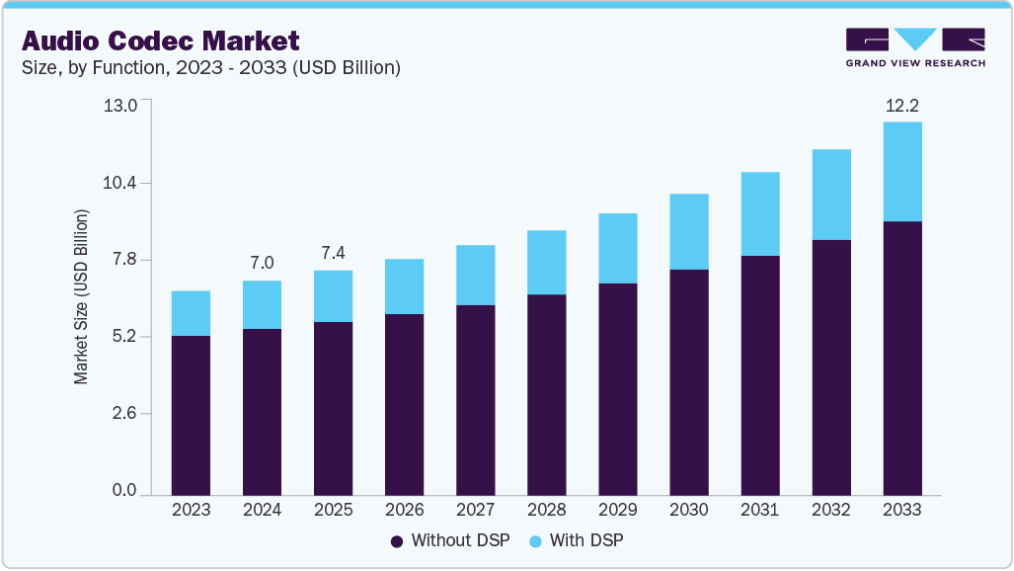 本レポートは、2021年から2033年までの各サブセグメントにおける最新の業界動向と機会を分析し、グローバル、地域、国レベルでの収益成長を予測します。グランドビューリサーチは、機能、コンポーネントタイプ、アプリケーション、地域に基づいてグローバルオーディオコーデック市場レポートをセグメント化しています。