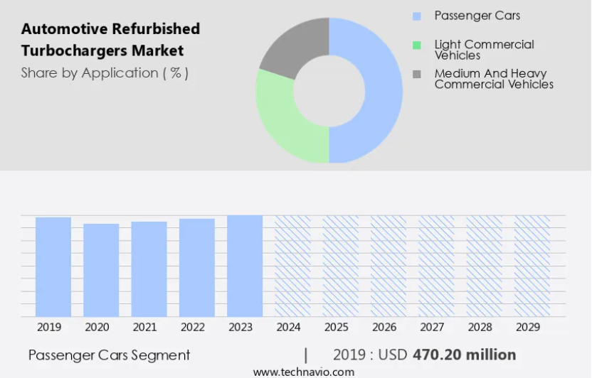 乗用車セグメントは、2019年に4億7,020万米ドルと評価され、予測期間中は徐々に増加しました。ターボチャージャーの修理、再生、再製造、およびトラブルシューティングサービスは、これらのコンポーネントの耐久性と効率を維持するために不可欠です。ターボチャージャーメーカーは、振動、騒音、排出ガス問題に対応するための多様なソリューションを提供しています。産業用ターボチャージャーは、船舶、発電、石油・ガス業界など、多様な産業で広く採用されています。ターボチャージャーのメンテナンス、点検、清掃、故障分析は、その最適な性能と寿命を確保するために不可欠です。トラック、バス、オフロード車両などの重機・商用車用ターボチャージャーは、エンジン出力の向上と燃料消費量の削減に不可欠です。ターボチャージャーの保証、スプール、アクチュエータ技術は、これらの用途において重要な考慮事項です。サービスプロバイダーやメーカーは、市場の変化する要求に応えるため、ターボチャージャーの再構築と革新を継続的な優先課題としています。タービンとコンプレッサーで構成されるこれらのシステムは、2つのファンを使用してエンジンに空気を送り込み、燃料効率とエンジン性能を最大化します。
