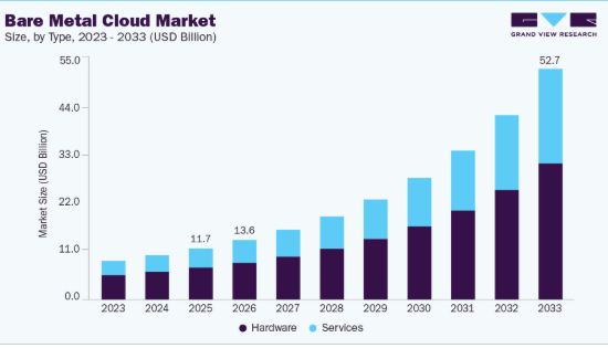 この市場の成長は、組織がレイテンシーに敏感なワークロードをベアメタルクラウドソリューションに移行させるにつれ、高性能で安全かつ専用のインフラに対する企業の需要が高まっていることに起因しています。