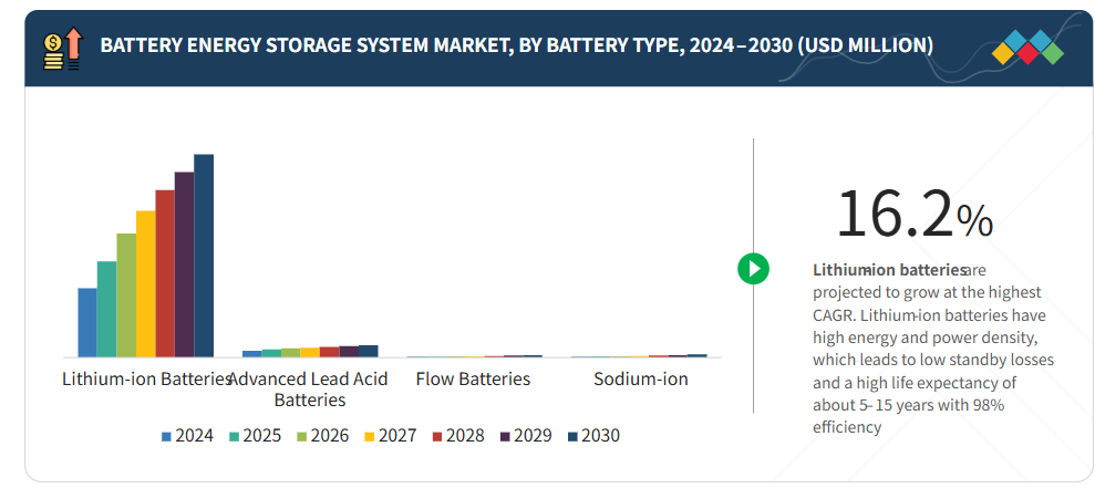リチウムイオン電池は、高い効率性、拡張性、およびコスト低下の後押しを受け、BESS導入において引き続き主流を占めております。