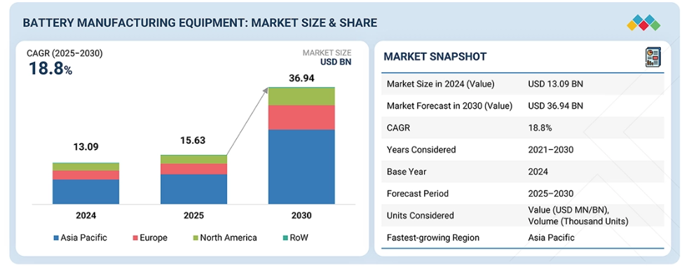 予測期間中、アジア太平洋地域が世界電池製造装置市場で最も急速に成長する地域となる見込み