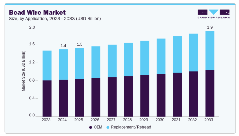 国際自動車工業連合会(OICA)によりますと、2024年の世界の自動車生産台数は約9,350万台に達し、前年比で増加を示しました。新興地域および先進地域において乗用車および商用車の保有台数が増加するにつれ、タイヤメーカーは純正部品仕様を満たすため、より多くの高強度ビードワイヤーを必要としております。商業輸送関連セクターの成長は、荷重耐性と耐久性においてビードワイヤーの性能が極めて重要となる大型タイヤの需要を拡大させております。