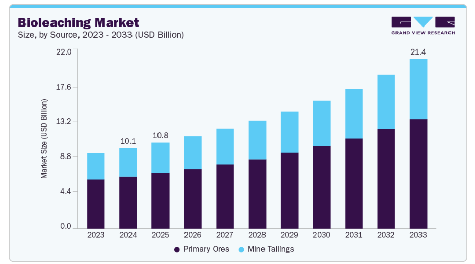 世界的な金属需要の高まりも、市場成長を牽引するもう一つの重要な要因です。銅、金、ニッケル、コバルト、希土類元素などの金属は、電子、再生可能エネルギー技術、電気自動車、バッテリー、インフラプロジェクトにおいて不可欠な構成要素です。急速な工業化、都市化、クリーンエネルギーシステムへの移行は、これらの金属への需要をさらに高め、従来型の鉱業に負荷をかけています。バイオリーチングは、こうした増大する金属需要を満たす実用的かつ持続可能な解決策を提供します。低品位鉱石や採掘廃棄物を効率的に処理する能力により、産業は重要金属の安定供給を維持し、高品位鉱床への依存度を低減し、従来型鉱業に伴う環境影響を最小限に抑えることが可能となり、経済成長と持続可能な開発目標の両方を支援します。