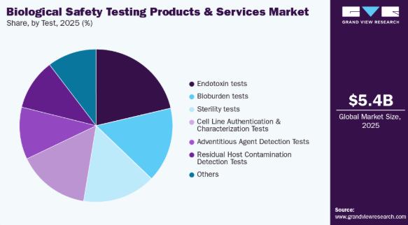 機器セグメントは、精密で自動化された高スループット技術への需要増加を背景に、予測期間中最も高いCAGRで成長すると見込まれる。バイオ医薬品、ワクチン、細胞・遺伝子治療が世界の医薬品パイプラインを支配し続ける中、複雑なバイオセーフティ試験ワークフローを支える高度な機器の必要性はこれまで以上に重要となっている。このセグメントには、PCR装置、エンドトキシン・マイコプラズマ検出システム、バイオセーフティキャビネット、自動微生物同定プラットフォーム、次世代シーケンシング(NGS)装置など、幅広い機器が含まれます。主要な成長要因の一つは、業界における自動化とコンプライアンス(特に21 CFR Part 11などのデータ完全性基準)への注目の高まりであり、これにより規制順守にはデジタル統合型機器が不可欠となっています。迅速微生物法(RMM)は無菌試験の実践を変革している。2025年3月、ソテラ・ヘルス傘下のネルソン・ラボラトリーズは、RMMベースの無菌試験を米国と欧州の3研究所に拡大した。この先進的な手法は幅広い医療機器・医薬品製品をサポートし、