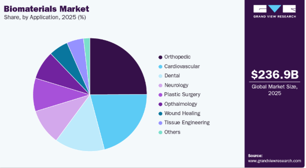 さらに、患者の意識向上、医療アクセスの拡大、慢性疾患の増加が、先進的な外科ソリューションの普及を後押ししている。低侵襲手術は、リハビリ費用や再手術率を低減するため、長期的な費用対効果の高さから支持されている。この外科的実践の構造的変化は、高性能生体材料への持続的な需要を強化し、世界の生体材料産業にとって重要な成長エンジンとなっている。
