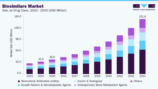 さらに、これらの医薬品は研究開発への投資が少なく済む一方で同等の効果を提供するため、比較的製造が容易です。これにより医療費削減に寄与できます。加えて、製造コストの削減と需要増加により、生産者は利益拡大を目的にバイオシミラーへの移行を促進され、市場をさらに活性化させる可能性があります。バイオシミラーは原薬生物学的製剤と有効性・安全性の面で類似していると見なされますが、含有物質や医療成分の組み合わせがわずかに異なる場合があります。