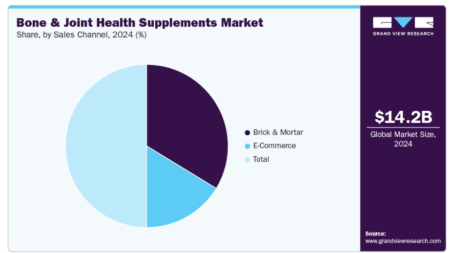 実店舗セグメントは2024年に67.41%超の最大の収益シェアを占めました。このセグメント成長の主要因の一つは、多様な製品種類とブランドを取り扱う骨・関節健康サプリメント販売店の増加です。企業はより多くの店舗に出店し、より広範な人口層にリーチするとともに、変化する消費者ニーズに対応することで、この成長をさらに促進しています。