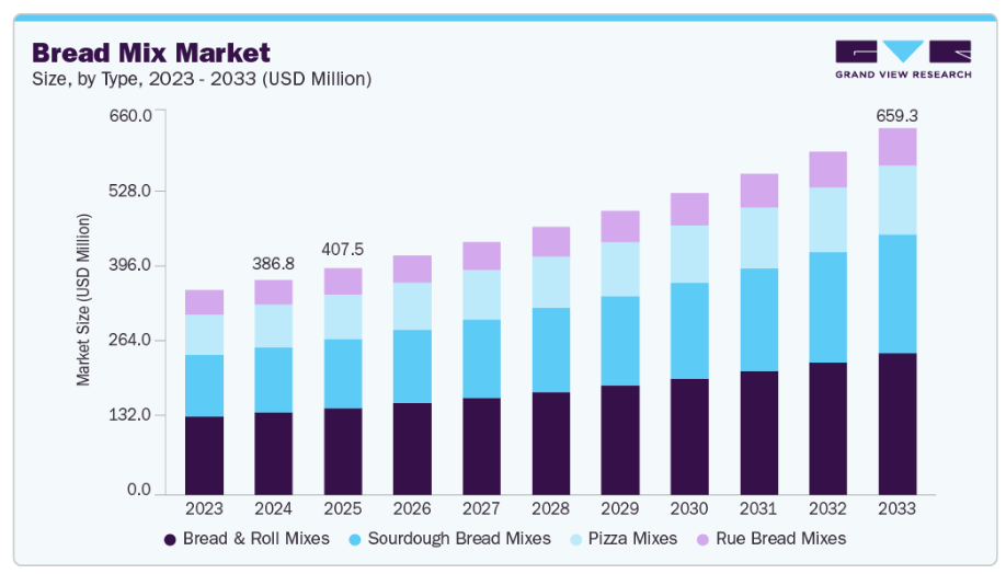 市場の成長は、利便性、家庭でのパン作り、より健康的な配合への需要の高まりによって牽引されております。