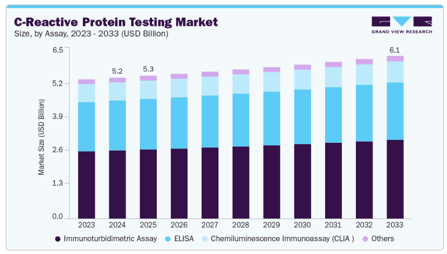 この研究結果は、30代からhsCRP値を評価することで将来の心血管イベントをより正確に予測できる可能性を示唆しており、早期介入と個別化医療戦略の重要性を浮き彫りにしています。こうした進展はCRP検査のダイナミックな性質を裏付け、市場成長と臨床実践の両面におけるその役割の拡大を反映しています。