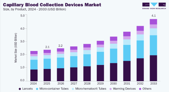 分子診断ツールの革新により、利便性が向上した迅速かつ費用対効果の高い検査が可能となった。毛細血管採血デバイスはPoC診断と連携した迅速な血液検査を支援する。静脈血や動脈血の採取と比較して、毛細血管サンプリングは侵襲性が低く、費用対効果に優れ、処置に訓練を受けた専門家を必要としない。