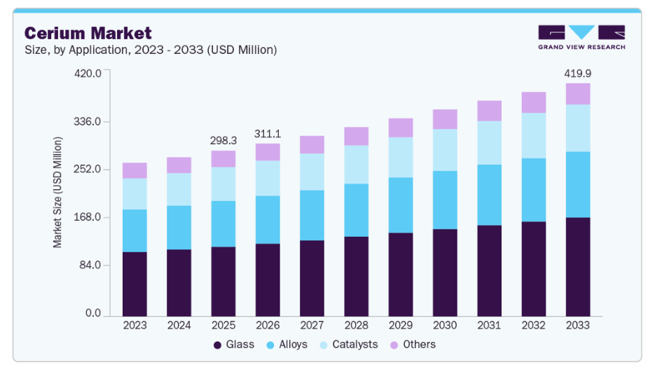 ■ 英語タイトル:Cerium Market Size, Share & Trends Analysis Report By Application (Glass, Catalysts, Alloys), By Region (North America, Europe, Latin America, Asia Pacific), And Segment Forecasts, Key Companies And Competitive Analysis, 2026 - 2033