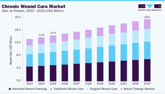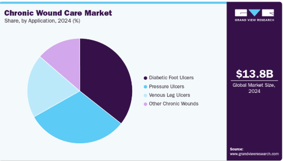 米国慢性創傷ケア市場は、糖尿病・肥満・高齢化による負担増(これらは糖尿病性足潰瘍・静脈性下腿潰瘍・褥瘡の高発症率と強く関連)により拡大を続けている。病院による専門創傷ケアセンターや先進治療への投資増加も市場成長を後押し。CMSガイドライン・償還政策・医療品質プログラムの拡充が、全国的なエビデンスに基づく創傷管理実践の普及を促進している。