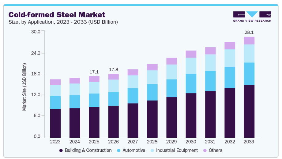 ■ 英語タイトル:Cold-formed Steel Market Size, Share & Trends Analysis Report By Application (Automotive, Building & Construction, Industrial Equipment), By Region (North America, Europe, Asia Pacific), And Segment Forecasts, 2026 - 2033