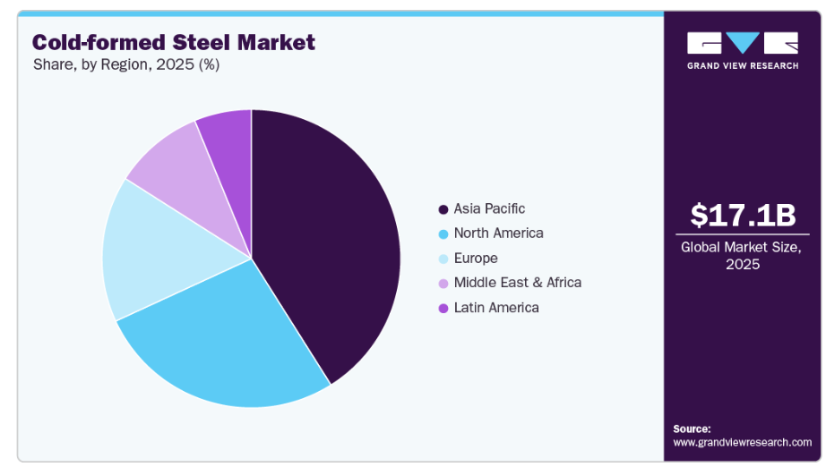 • 2025年、アジア太平洋地域において、中国の冷間成形鋼産業が最大の市場売上シェアを占めました。