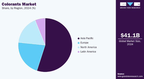 • アジア太平洋地域は2024年に52.4%の最大の収益シェアを占め、世界の着色剤市場を支配した。