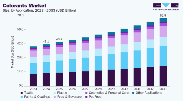■ 英語タイトル:Colorants Market Size, Share & Trends Analysis Report By Application (Plastics, Textile, Food & Beverage, Personal Care, Printing, Paints & Coatings, Pet Food), By Region, And Segment Forecasts, 2025 - 2033