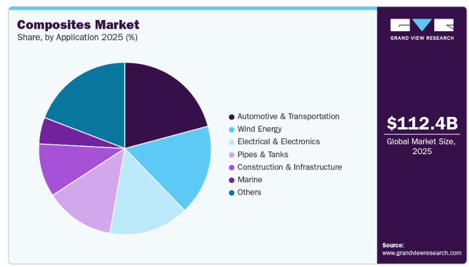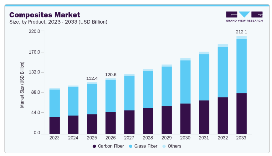 ■ 英語タイトル:Composites Market Size, Share & Trends Analysis Report By Product (Carbon Fiber, Glass Fiber), By Application (Automotive & Transportation, Electrical & Electronics, Wind Energy), By Manufacturing Process, By Region, And Segment Forecasts, 2026 - 2033