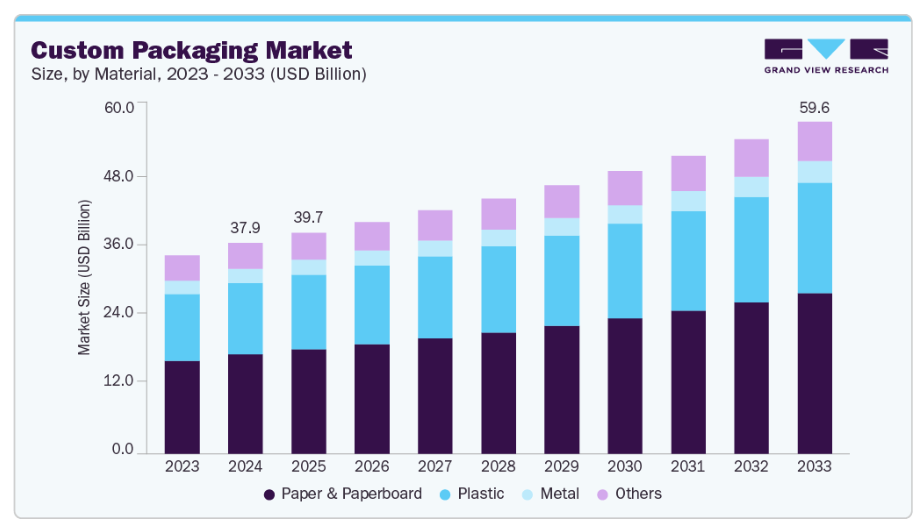 環境問題への懸念が高まる中、ブランドは持続可能なカスタム包装ソリューションの導入を迫られています。消費者はリサイクル可能、生分解性、または再利用可能な素材で包装された製品をますます好むようになり、企業は包装デザインの革新を迫られています。カスタム包装は、これらの持続可能な素材を取り入れつつ、美的魅力と機能性を維持するようにカスタマイズすることが可能です。コカ・コーラやユニリーバといった企業は、植物由来プラスチックやリサイクル可能なカートンなど、エコフレンドリーなカスタム包装の革新に投資し、環境意識の高い消費者層への訴求を図っています。この傾向は市場需要を牽引するだけでなく、包装廃棄物に関する世界的な規制強化へのブランド対応にも寄与しています。