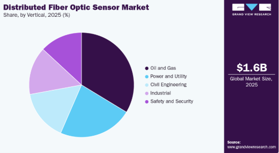 本産業は、複数の産業分野における高度なリアルタイム監視ソリューションへの需要増加を背景に、急速に進化するセンシング技術分野を代表する。これらのシステムは光ファイバーを活用し、長距離にわたる温度・ひずみ・音響変動を測定することで、高精度な連続データ収集を実現する。石油・ガス、電力・公益事業、土木工学などの主要セクターでは、運用安全性の強化、資産パフォーマンスの向上、ダウンタイム削減のために、こうしたセンサーへの依存度が高まっている。例えば2024年9月、SLBはパターソン-UTIおよびADNOC Drilling Company PJSCと合弁事業「Turnwell Industries LLC OPC」を設立。スマート掘削設計、AI駆動型生産能力、完成技術の開発を推進し、UAEの非在来型石油・ガス開発を加速させることを目的としている。インフラネットワークがより複雑化し地理的に分散するにつれ、信頼性の高い高精度光ファイバーセンシングソリューションへの需要はさらに高まっています。