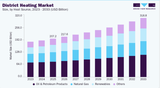 世界的な業界は、信頼性が高く、効率的で、低排出の熱エネルギーシステムに対する需要の高まりを背景に、特に化石燃料ボイラーからよりクリーンな熱源への移行を加速させている地域において、発展を続けています。公益事業者、自治体、およびエネルギー開発業者は、分散型再生可能エネルギーの導入が依然として不均一な地域において、脱炭素化の目標を支援し、コスト効率を向上させるため、集中型暖房ネットワークへの投資を拡大しています。地域熱供給システムは、多様なエネルギー源(廃熱、バイオマス、地熱)を統合できる能力に加え、急速に拡大している太陽熱地域熱供給市場との相乗効果により、持続可能な都市暖房を実現する重要な基盤として位置づけられています。熱供給網の継続的な近代化に加え、老朽化したパイプラインや変電所の更新ニーズが相まって、地域熱供給パイプラインネットワーク市場全体の成長をさらに後押ししており、地域熱供給用パイプ市場や地域熱供給用バルブ市場における部品需要も高まっています。