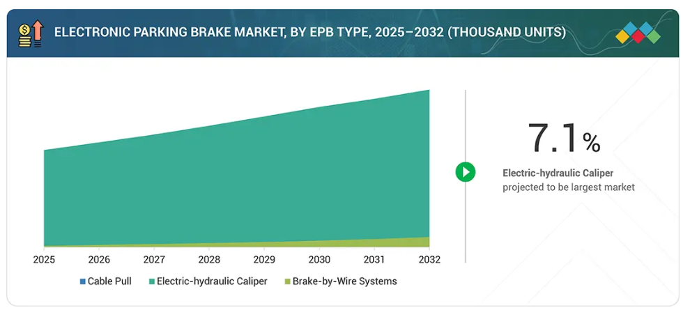 EPB市場のトレンドと変革は、現在および将来の発展の両方を明らかにしています。EPB市場は、厳格なグローバル安全規制に牽引され、従来型のケーブル式システムから電子式システムへの移行という大きな変革期を迎えています。将来の収益構成は、電気機械式・電気油圧式ブレーキシステムなど、より広範なブレーキ・バイ・ワイヤ技術の基盤となるEPBシステムが主導する傾向が強まっています。これらの革新技術は、内燃機関車・電気乗用車、商用車、自動運転車といった主要セグメントにおける顧客ニーズを満たす上で不可欠です。この変化は、進化する安全基準と新興車両技術が従来型の収益モデルを破壊し、EPB分野に新たな機会を開いていることを浮き彫りにしています。