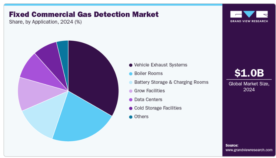 2024年、車両排気システム分野が固定式商業用ガス検知産業を牽引しました。駐車場、自動車整備工場、トンネル、輸送デポなどの閉鎖・半閉鎖環境における大気質モニタリングと排出ガス制御の需要増加が、同分野の成長を促進しています。内燃機関から排出される一酸化炭素、二酸化窒素、炭化水素などの有毒ガスを監視するため、固定式ガス検知システムの導入が拡大しています。都市化とインフラ開発の進展により、大規模な地下駐車場施設の建設が加速しております。これらの施設では、地域の安全基準や建築規制により、適切な換気とガス監視が義務付けられております。