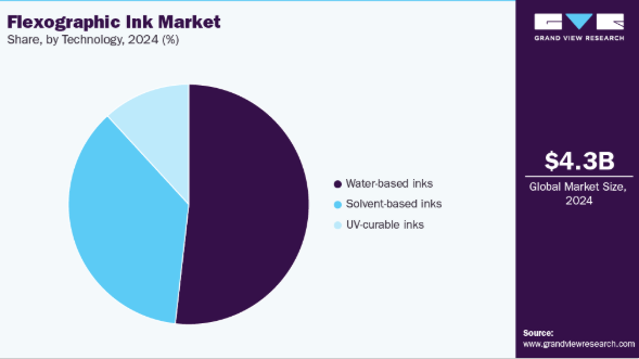 - 技術別では、水性インキが2024年に価値ベースで51.8%の最大の収益シェアを占めた。