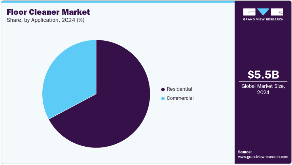 床用洗剤の最大の用途分野は住宅部門であり、2024年には35億米ドル超の市場収益を占めた。住宅セグメントは、都市化の進展、可処分所得の増加、衛生・清潔意識の高まりに牽引されている。より多くの人々が都市部に移住し、ライフスタイルがより多忙になるにつれ、住宅所有者は家事の負担を軽減する便利で効果的な清掃ソリューションを求める。タイル、ハードウッド、ビニールなど、住宅における多素材床材の成長過程は、様々な表面に対応できる専用および多目的床用洗剤の需要を促進している。新型コロナパンデミックとそれに続く世界の健康懸念は、家庭内の衛生管理への注目をさらに高め、洗浄と消毒の両機能を備えた床用洗浄製品の採用拡大につながっています。