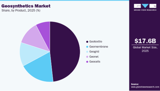 さらに、製品性能・耐久性・施工効率を向上させた技術革新も市場拡大に寄与している。高分子科学の革新により、耐薬品性・温度安定性・機械的強度が向上したジオシンセティック材が開発され、適用範囲が拡大している。加えて、生分解性・再生利用可能なジオシンセティック材の研究拡大は、循環型経済原則への業界シフトを反映している。こうした進歩が地球規模の持続可能性優先事項と合致する中、多様な地盤工学・環境工学プロジェクトにおけるジオシンセティック材の長期的な採用が継続的に強化されている。