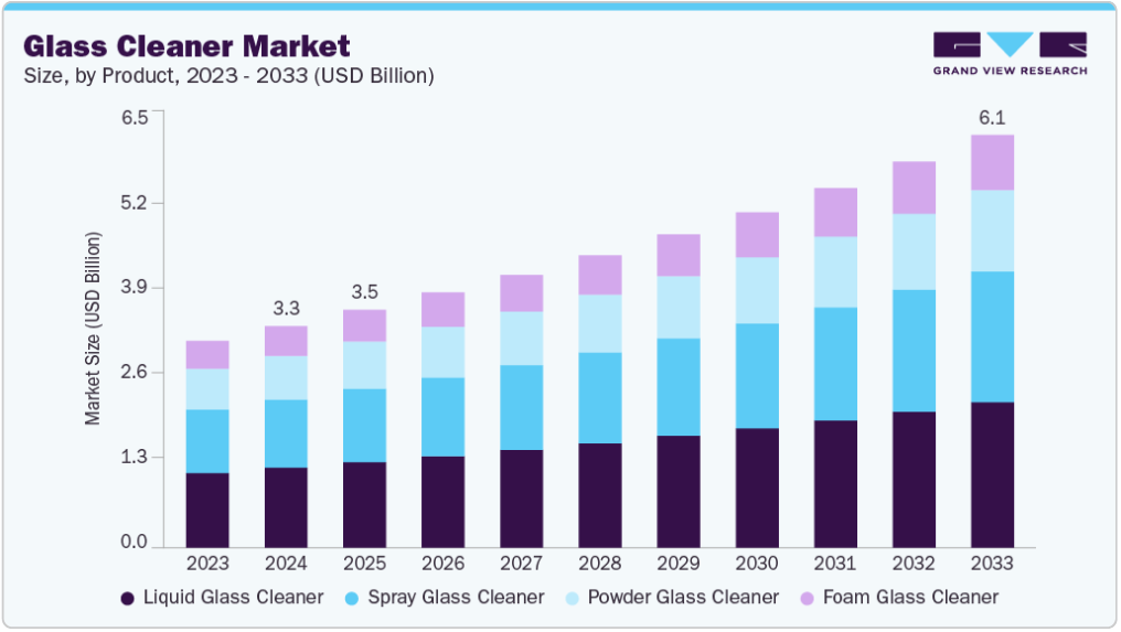 市場の成長過程を牽引するもう一つの重要な要因は、清潔さと衛生の重要性に対する一般の意識の高まりである。新型コロナパンデミック以降、消費者と企業の双方が、家庭や職場における衛生環境の維持により重点を置くようになった。目立ちやすく指紋や汚れが目立ちやすいガラス表面は、衛生基準と視覚的な魅力を維持するために頻繁な清掃が必要である。この傾向は、その効果と使いやすさで知られる専門的なガラス洗浄製品の需要を大きく押し上げた。