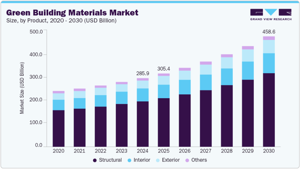 ■ 英語タイトル:Green Building Materials Market (2025 - 2030)Size, Share & Trends Analysis Report By Application (Framing, Insulation, Roofing, Exterior Siding, Interior Finishing), By Product (Structural, Exterior, Interior), By Region, And Segment Forecasts