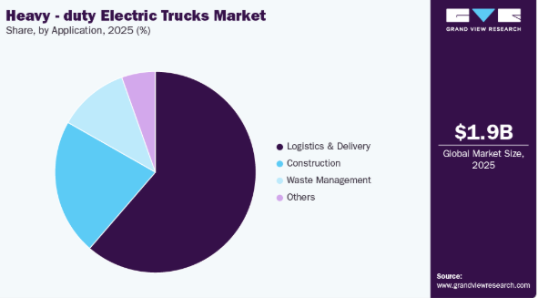 2025年には、物流・配送セグメントが市場を牽引しました。輸送業界における電気トラックへの移行は、貨物配送の効率化を目的としています。バッテリー技術の進歩と次世代モーターの登場は、都市物流における電気自動車の利用を促進するものと見込まれています。様々な物流・配送会社やEC企業が、ファーストマイル、ミドルマイル、ラストマイルにわたる配送に大型電気トラックを導入しています。例えば、2024年5月、Amazonは米国カリフォルニア州における大型電気トラックの保有台数を拡大し、南カリフォルニアの事業拠点に約50台のボルボVNRエレクトリックトラックを導入する計画を発表した。この取り組みは、ファーストマイル、ミドルマイル、ラストマイルの各段階を含む配送プロセス全体から炭素排出を排除しようとするAmazonの取り組みにおける重要なマイルストーンとなる。このような取り組みは、同セグメントの成長を促進すると予想される。