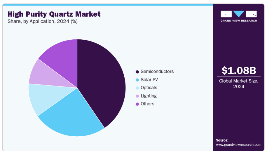 半導体炉や成膜システムで使用されるるつぼ、チューブ、その他の部品の製造には高純度石英が不可欠です。これらの工程では、わずかな汚染でも歩留まりや性能に影響を及ぼします。国内チップ生産に対する政府支援の強化と新規製造工場の設立により、高品位石英原料および精製製品への需要が高まっています。