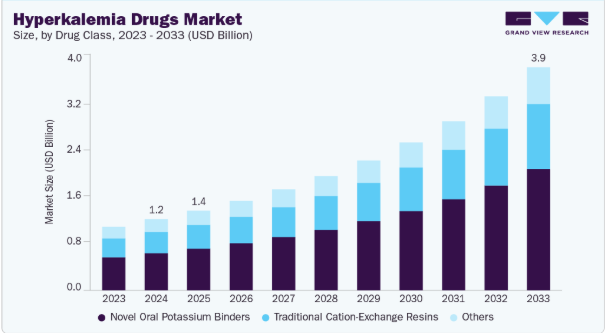 高齢層の増加を特徴とする世界的な人口高齢化は、心血管疾患・慢性腎臓病・糖尿病といった慢性疾患への脆弱性増大を招き、高カリウム血症リスクを上昇させる。これにより高カリウム血症治療薬の需要拡大が予測され、医薬品革新と治療選択肢の拡充が促進される見込みである。経口カリウム吸着剤の進歩と診断能力の向上は管理の改善を支え、戦略的提携と市場拡大は世界的な薬剤アクセス向上に寄与する。
