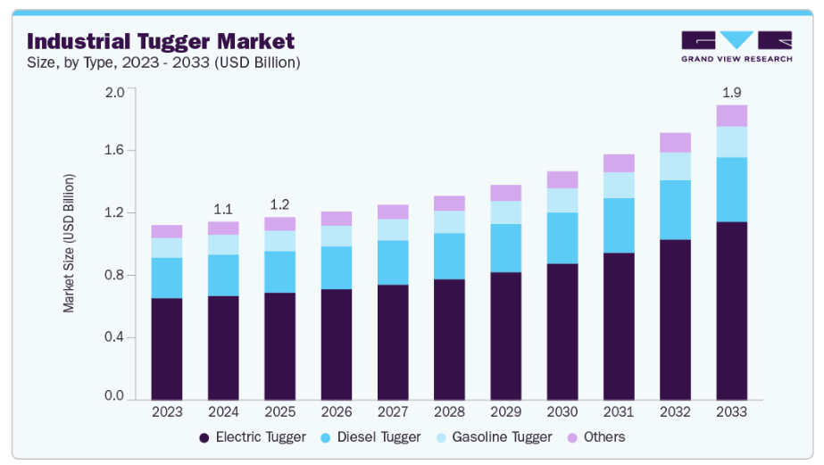 流通センターセグメントは予測期間中に著しいCAGRで成長すると見込まれています。流通センターでは、長距離かつ大量の貨物移動を伴う大規模・高スループット業務に対応するため、産業用タグラーが導入されています。グローバルサプライチェーンとジャストインタイム流通モデルの台頭により、パレット積載貨物、重量物、複数トレーラーを効率的に輸送できる設備が求められています。特に積載量10,000ポンド(約4.5トン)以上の産業用タグラーは、受入・仕分け・出荷エリア間の処理時間を短縮し、流れを改善するのに役立ちます。