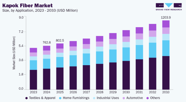 カポック繊維加工技術の進歩も市場拡大に大きく寄与している。中空構造や紡績の難しさといった従来の問題点は、繊維の耐久性と汎用性を高める革新的な加工技術によって軽減された。こうした改良により、断熱材や自動車部品など新たな分野への応用範囲が広がっている。生産効率と製品品質の向上は産業用途をさらに拡大させ、カポック繊維が様々な分野で合成繊維の代替として採用される機会を増やしています。こうした進歩により、市場はより広範な顧客基盤を獲得することが可能となっています。