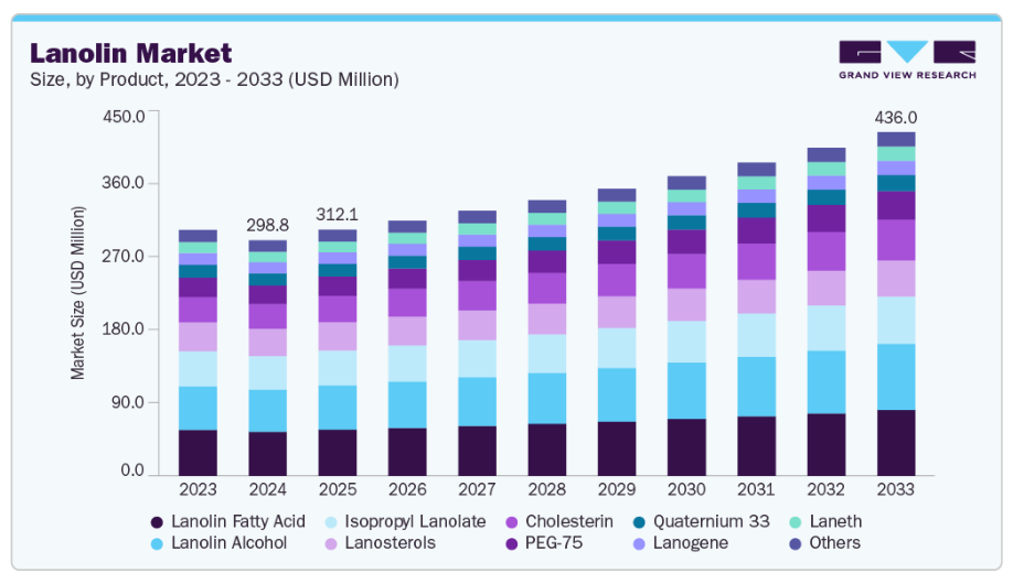 ■ 英語タイトル:Lanolin Market Size, Share & Trends Analysis Report By Product (Isopropyl Lanolate, Laneth, Lanogene, Lanosterols, Quaternium 33, PEG-75, Lanolin Fatty Acid), By Application (Personal Care & Cosmetics, Baby Care), By Region, And Segment Forecasts, 2025 - 2033