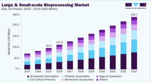 慢性疾患の世界的な増加、高齢化、そして個別化医療への推進は、この生物学的製剤ブームと密接に関連している。がん、自己免疫疾患、パーキンソン病やアルツハイマー病などの神経疾患がより一般的になるにつれ、先進的治療法はますます必要とされている。CDMO、バイオテックスタートアップ、製薬企業はあらゆる規模でバイオ製造能力を拡大している。ブランド生物学的製剤の特許切れを背景にバイオシミラーの使用が増加していることで、微生物ベースシステムやシングルユースソリューションといった効果的で手頃なバイオプロセシング技術への需要がさらに高まっている。