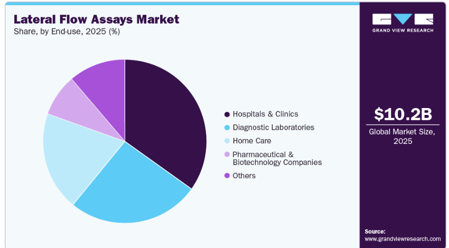 LFA 市場では、主要企業が革新的な診断ソリューションに投資し、活発な合併や買収が行われています。2025年1月、bioMérieux は、ポイントオブケア診断の能力を強化するため、免疫測定プラットフォームを専門とするノルウェーの企業 SpinChip Diagnostics ASA を買収しました。同様に、さまざまな産業リーダー企業が、規制当局の承認や技術主導の事業拡大を通じてポートフォリオの強化に継続的に取り組み、急速に変化しているラテラルフローアッセイ分野における競争力を固めています。こうした戦略的取り組みにより、各社の技術力が向上し、市場での存在感が拡大しています。
