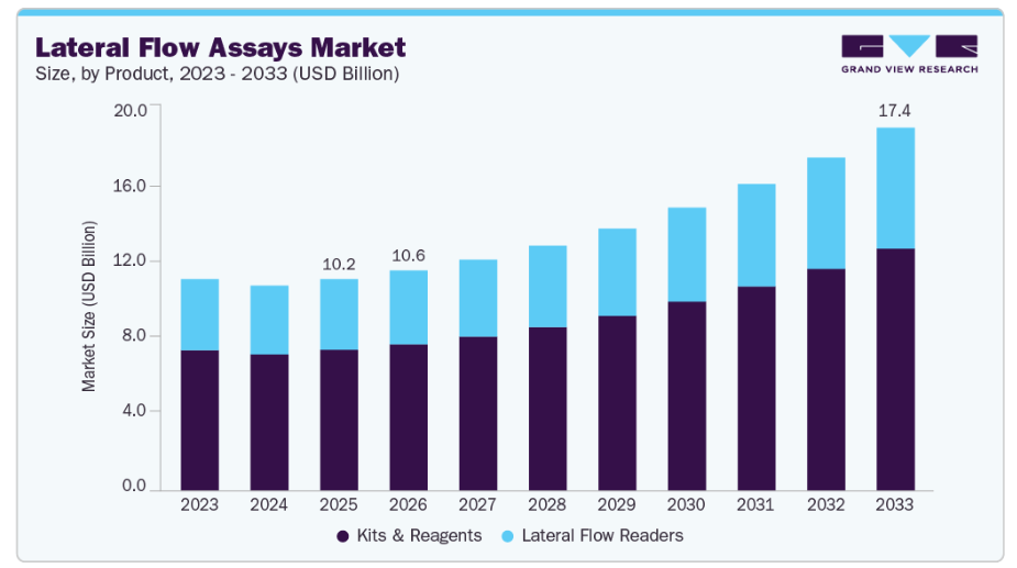 ■ 英語タイトル:Lateral Flow Assays Market Size, Share & Trends Analysis Report By Product (Kits, Lateral Flow Readers), By Application (Clinical Testing, Veterinary Diagnostics), By Technique, By End-use, By Region, And Segment Forecasts, 2025 - 2033