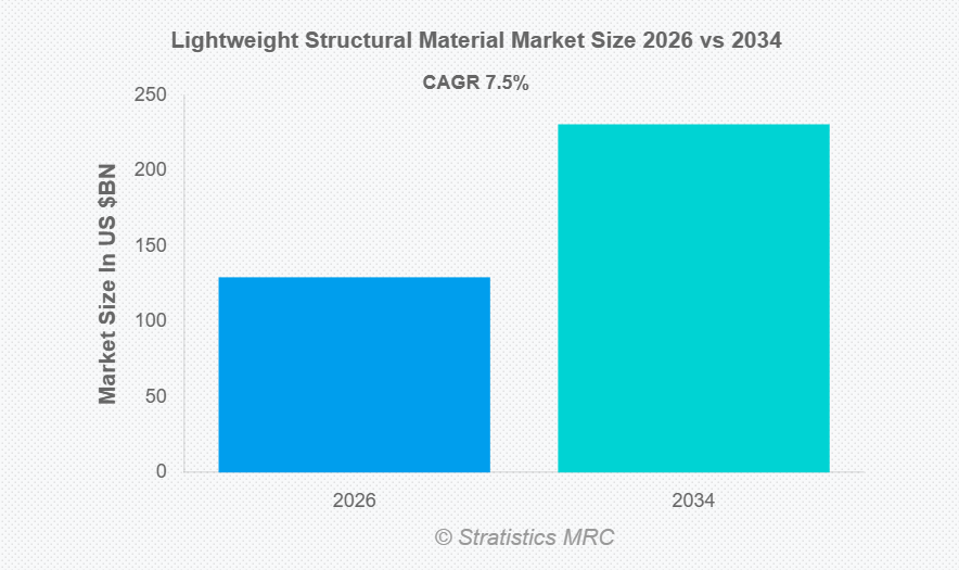 Stratistics MRCの調査によると、世界の軽量構造材料市場は2026年に1,294億ドル規模となり、予測期間中に年平均成長率(CAGR)7.5%で成長し、2034年までに2,308億ドルに達すると見込まれています。