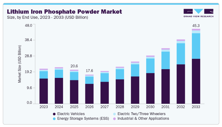 ■ 英語タイトル:Lithium Iron Phosphate Powder Market Size, Share & Trends Analysis Report By End Use (Energy Storage Systems, Electric Vehicles, Electric Two/Three Wheelers), By Region, And Segment Forecasts, 2026 - 2033