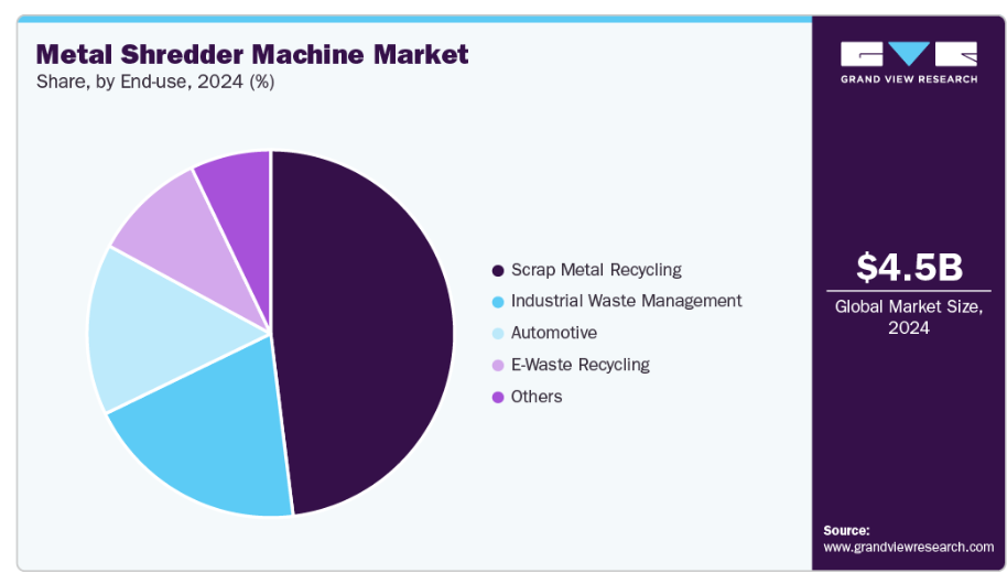 - 最終用途別では、金属スクラップリサイクルが2024年に48.1%のシェアで市場を支配しました。