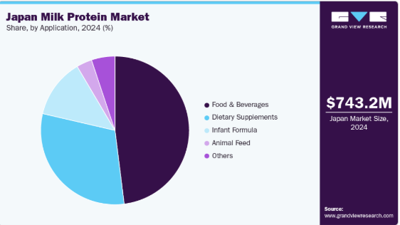 2024年、日本の乳タンパク質市場では食品・飲料セグメントが主導的な地位を占めました。日本統計局によると、2024年時点で、国内総人口の29.3%が65歳以上でした。この人口動態の変化に加え、健康志向の消費者層の拡大が、タンパク質強化食品・飲料への需要を牽引しています。スナックや飲料における乳タンパク質、特にホエイやカゼインの使用が、需要をさらに高めています。これらのタンパク質は、乳化、ゲル化、熱安定性といった機能的な利点が高く評価されており、タンパク質強化食品の食感、味、栄養価を向上させます。